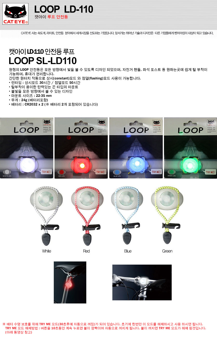 CATEYE ·çÇÁ LOOP (LD-110) ¾Æ¸§´Ù¿î ºÒºû CATEYE ·çÇÁ ¾ÈÀüµî(Èò»ö,»¡°­,ÆÄ¶û,³ì»ö)4°¡Áö»ö