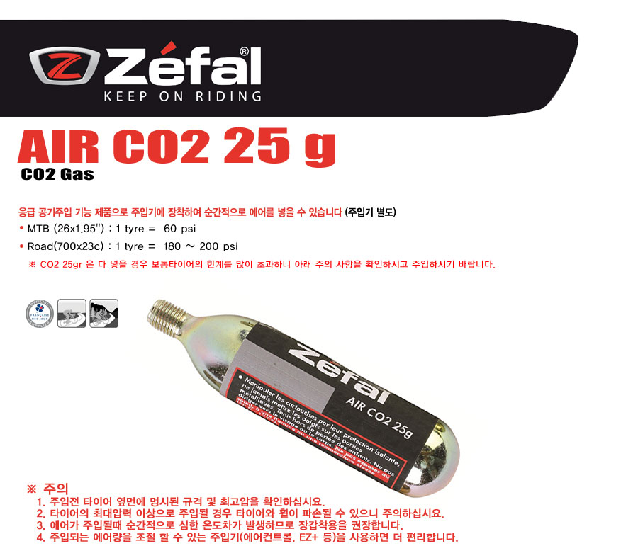Zefal AIR CO2-16g {¹°Ç°¹øÈ£ 4160} Zefa ¿¡¾î ÀÀ±Þóġ °ø±âGas 16gr
