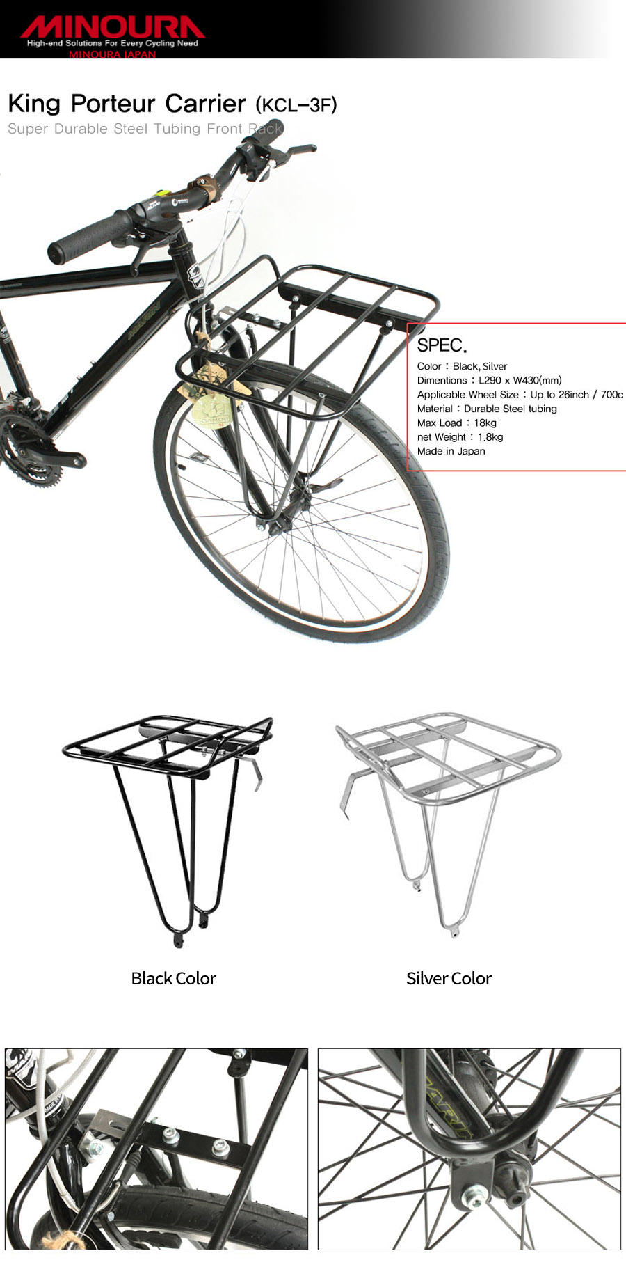 MT-800N ¹Ì³ë¿ì¶ó µÚÁü¹ÞÀÌ Tubular Steel Rear Rack MINOURA