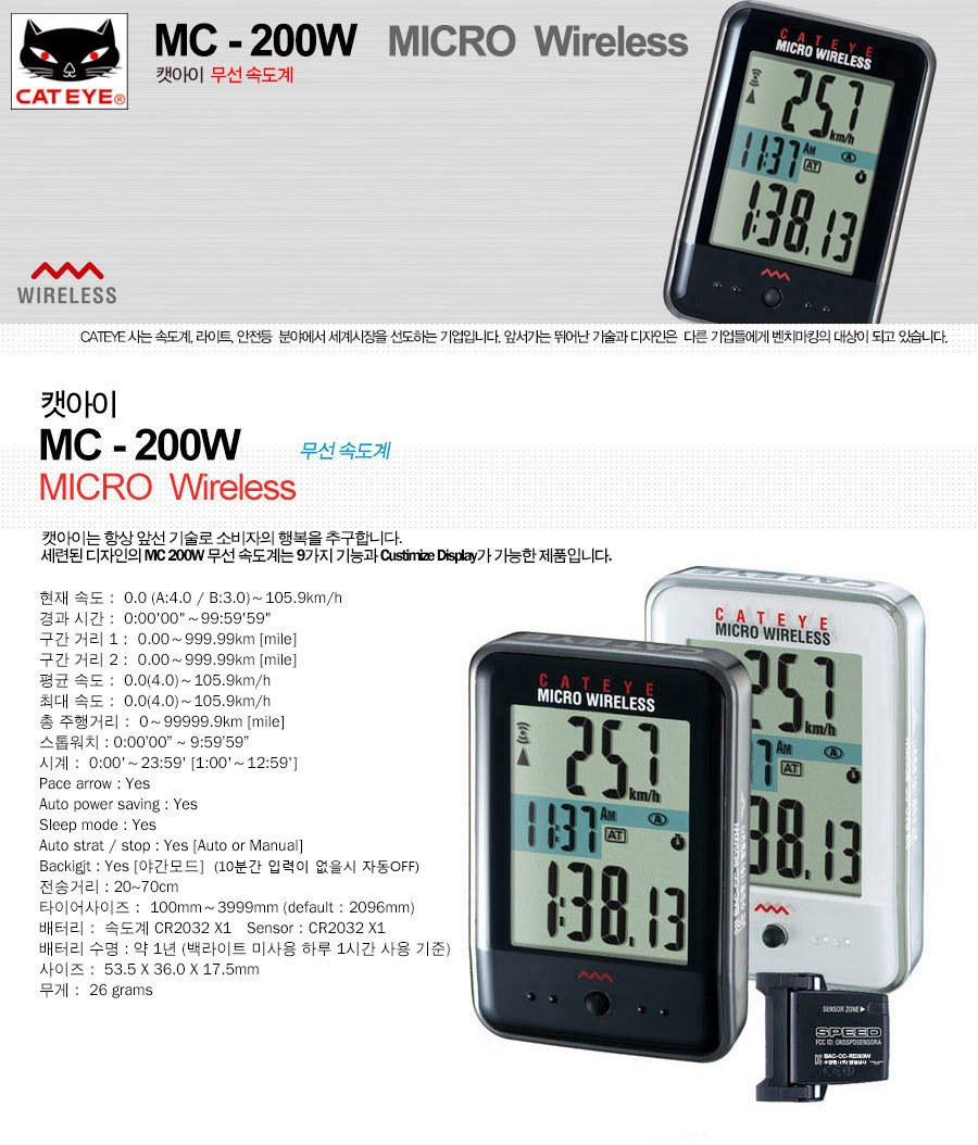 | CATEYE MC-200W ¹«¼±¼Óµµ°è MICRO WIRELESS Àç°íÇöȲ | |