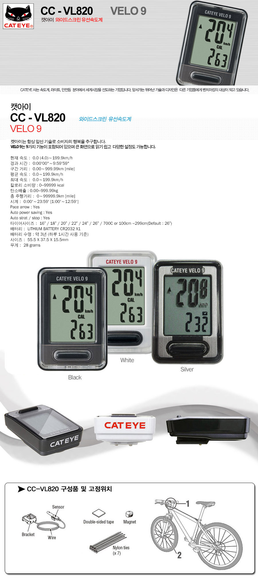 VELO 9 Ä®·Î¸® (ÃֽŠÀ¯¼± ¿ÍÀ̵å 9±â´É) {¹°Ç°¹øÈ£ 7512} Ĺ¾ÆÀÌ VL820 WIRE ¼Óµµ°è