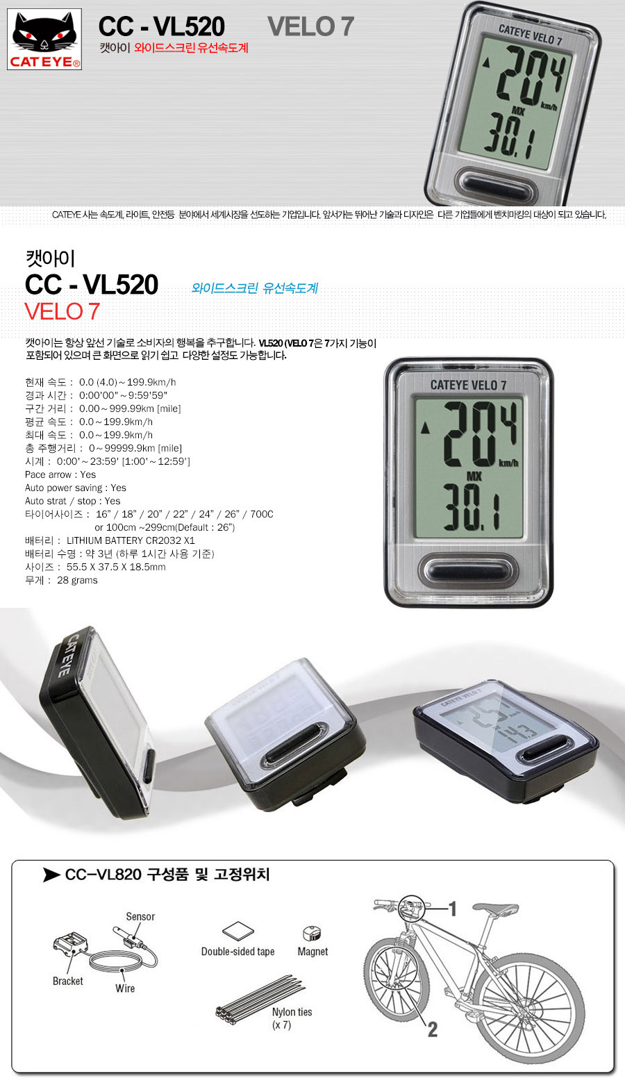 CATEYE ¼Óµµ°è VELO 8 (VL-810) 7°¡Áö±â´É+Ä®·Î¸® ±â´É À¯¼±¼Óµµ°è (Ä®·Î¸®±â´É)