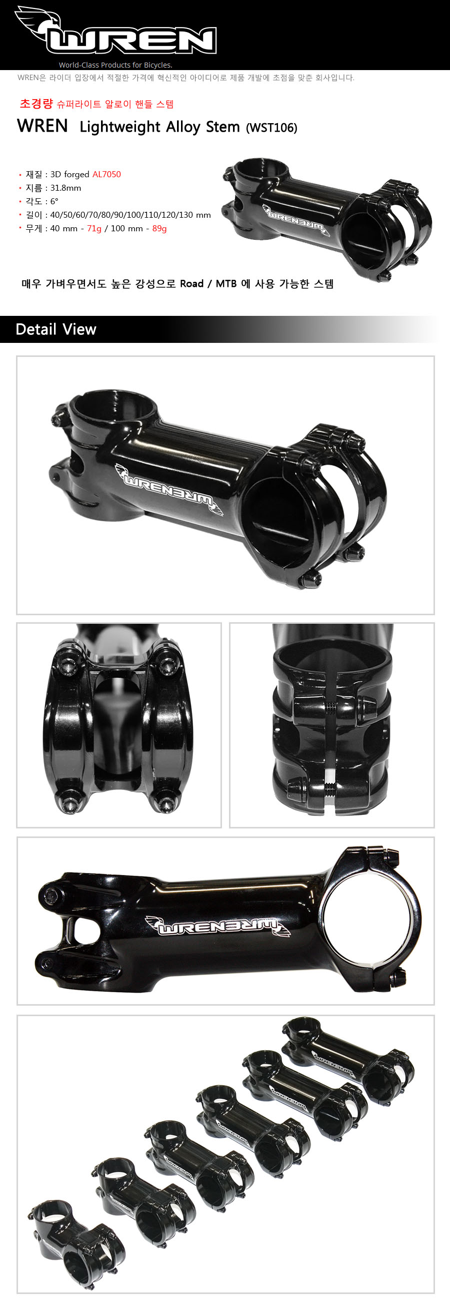 Ãʰ淮 3D Çڵ齺ÅÛ (Forged AL7050/31.8/6µµ) WREN LIGHTWEIGHT ALLOY STEM, WST106 40mm71gr100mm89gr
