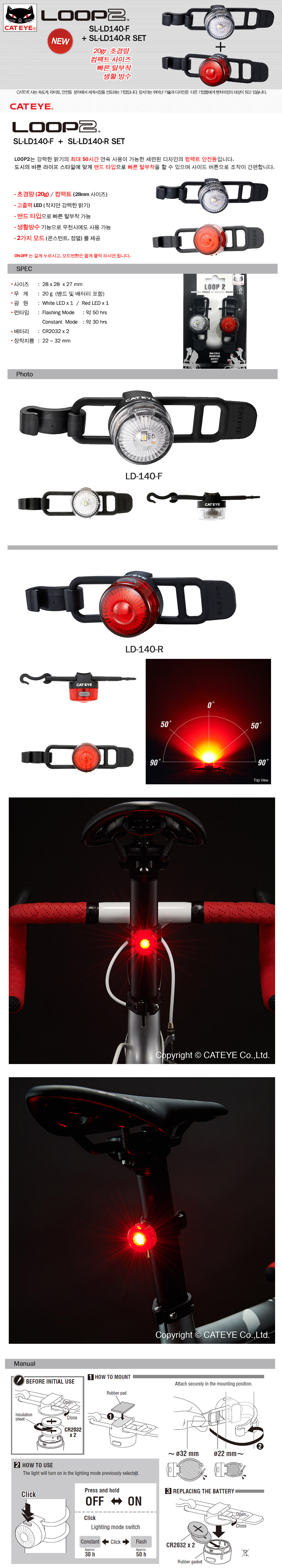 Ĺ¾ÆÀÌ LOOP2 USB ÃæÀü ¾ÈÀüµî ¾ÕµÚ ¼¼Æ® (White / Red LED) (LD140RC) CATEYE SL-LD140RC F/R SET MULTIFUL MOUNTING SAFTY LIGHT