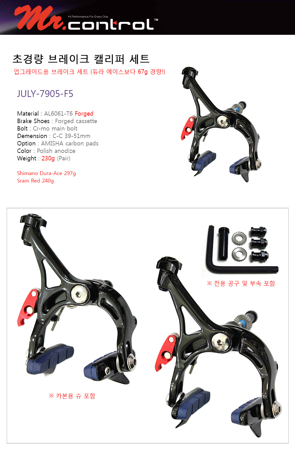 MR.CONTROL(LAMINAR) CALIPER BRAKE AL-6056-T6 FORGED W/CR-MO BOLT 39-51MM W/ASHIMA DARK BLUE PAD |