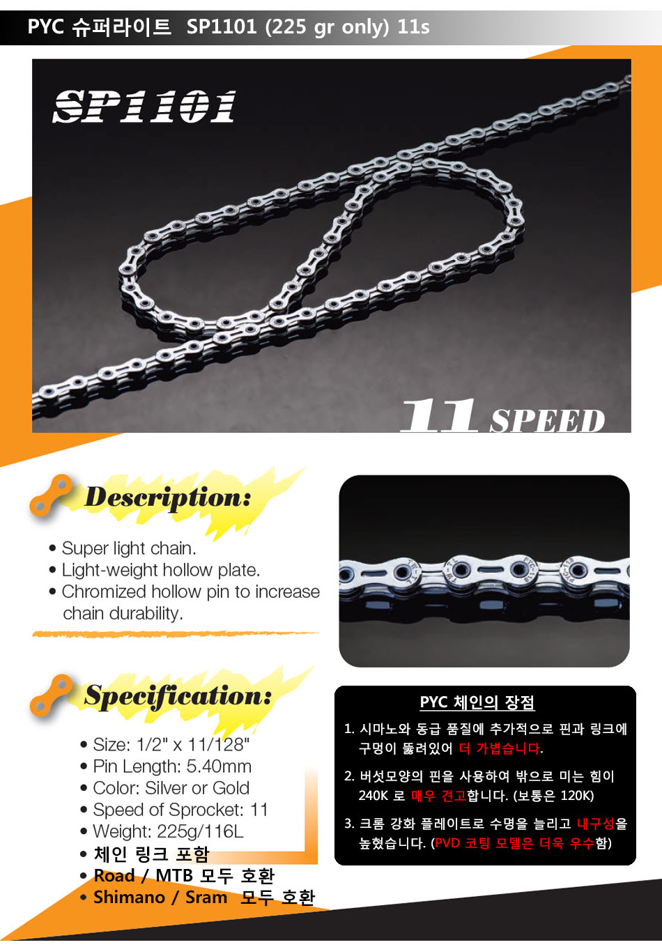 ¿ïÆ®¶óüÀÎ PYC ½´ÆÛ¶óÀÌÆ® SP1101 (225gr only) Silver 11s Silver, Hollow Chain, Super Light