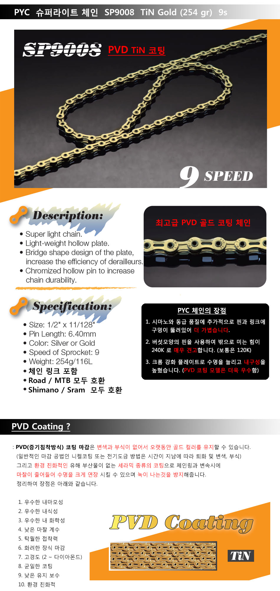 ¿ïÆ®¶óüÀÎ PYC ½´ÆÛ½ºÆ®·Õ P1102 TIN ÄÚÆÃ Gold (235gr) 11s PVD Coating TIN Golden, Solid Standard Chain