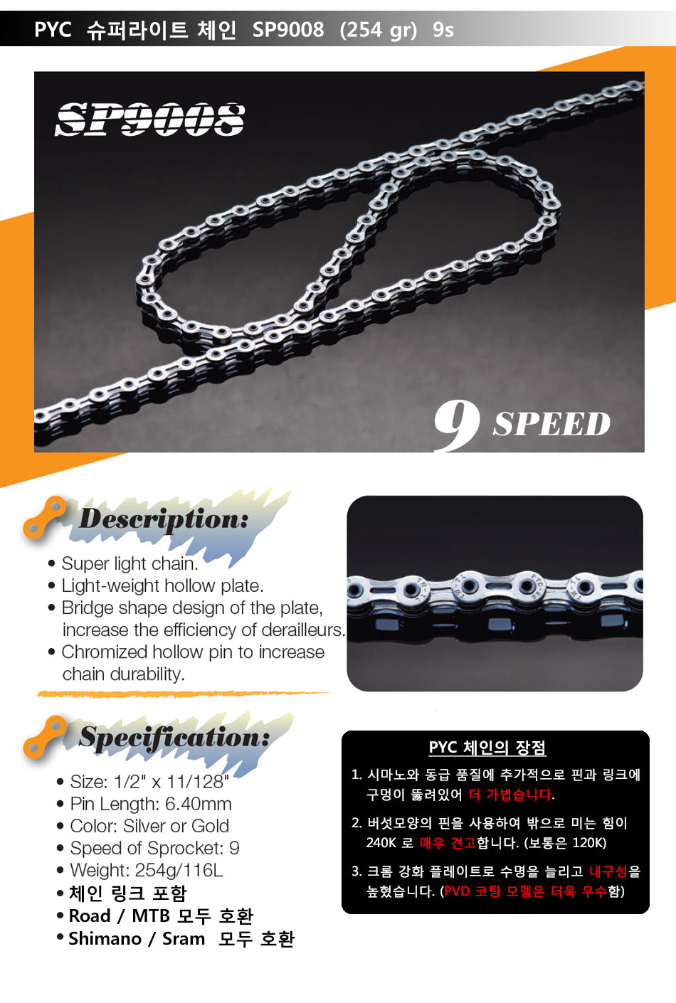 SP9008,1/2*11/128*116 Silver, Hollow Chain,Chrome harden tech,with ct820-9 missing Link |