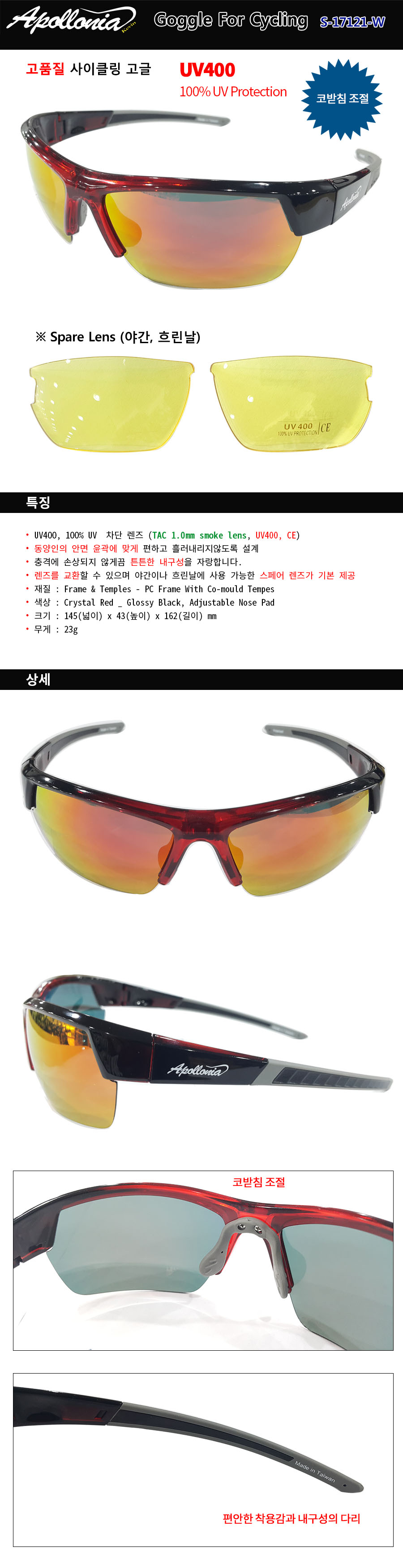 Apollonia °í±Û (S-17121-W) - Å©¸®½ºÅ» ·¹µå ÄÚÆÃ, ÄÚ¹ÞÀÌ Á¶Á¤ + ¾ß°£¿ë·»Áî {¹°Ç°¹øÈ£ 6107} Crystal Red + Glossy Black Adjustable Nose pad, UV400