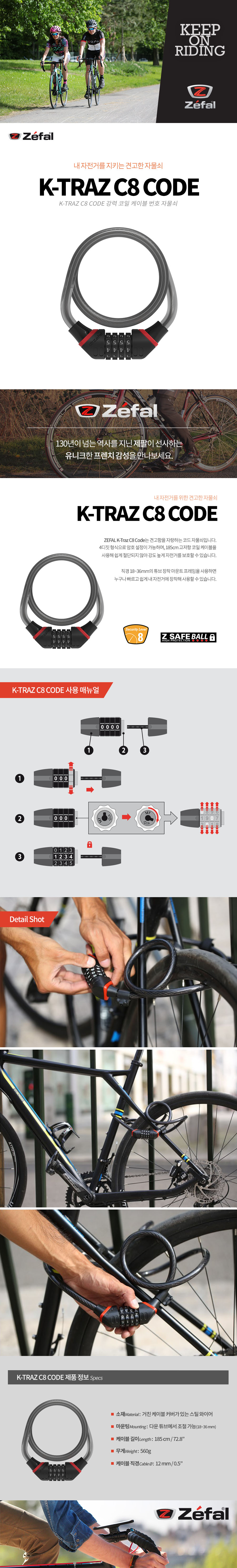 Á¦ÆÈ ¹øÈ£º¯È¯ ÀÚ¹°¼è C8 CODE Cable Lock 185cmx 8mm {¹°Ç°¹øÈ£ 4915-B} ZEFAL Á¤Âû°¡