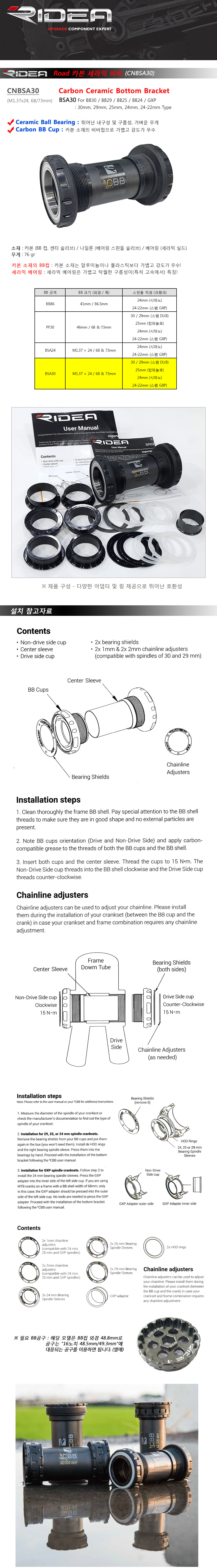 ǰ¸í ¹× ¸ðµ¨¸í ¹ÙÅÒºê¶óÄÏ / RIDEA Carbon Cerimic Bottom Bracket, BSA to BB30/BB29/BB25/BB24/GXP