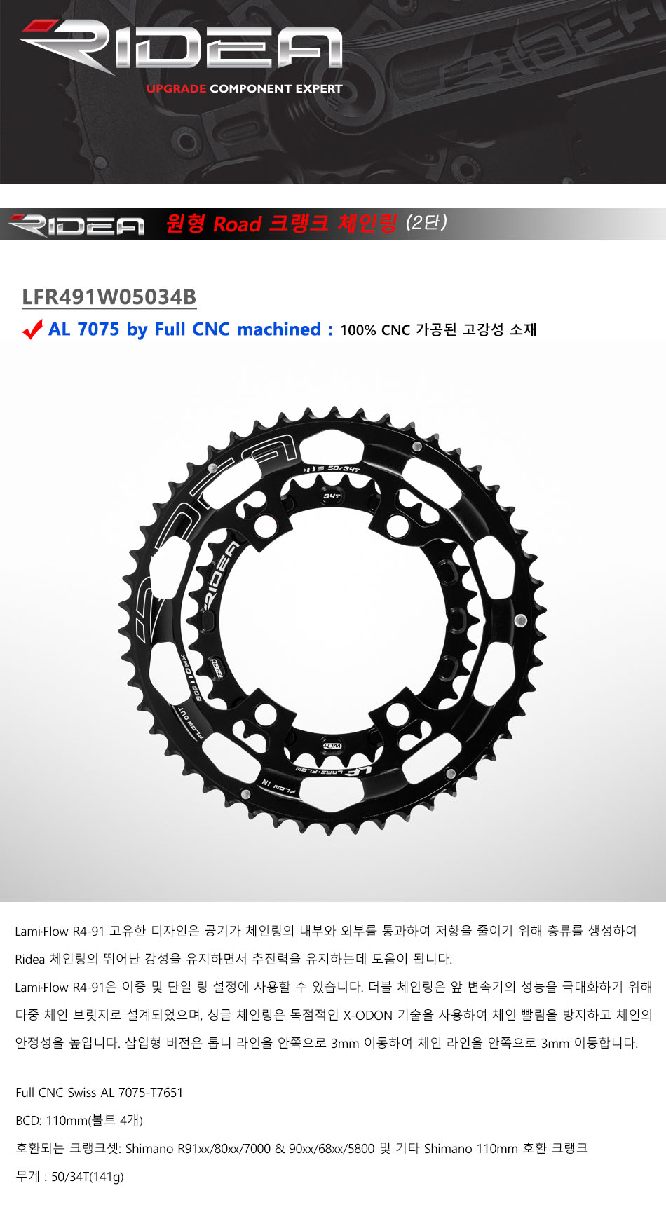 Ridea Road ¿øÇü Å©·©Å© R9100 4arms 50-34T (LFR491W) Circular Crank Chainring (BCD110) 9-11s / ½Ã¸¶³ë R9100/R8000