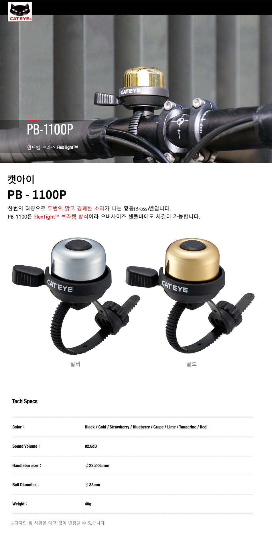 CATEYE PB-1400 FlexTight¢â Bell Aluminum °£Æí ¼³Ä¡ º§ (Ç÷¢½ºÅ¸ÀÌÆ® ÀüÂ÷Á¾¿ë !){¹°Ç°¹øÈ£ 7305}