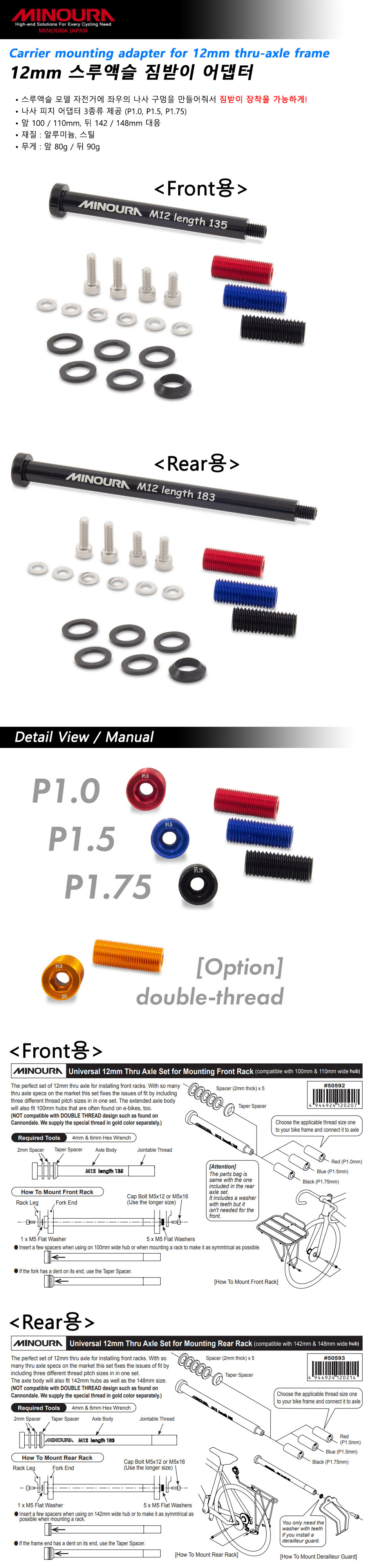 ¹Ì³ë¿ì¶ó 12mm ½º·ç¾×½½ Áü¹ÞÀÌ ¾î´ðÅÍ (Á¿ìÀÇ ³ª»ç ±¸¸ÛÀ» ÀÌ¿ëÇÏ¿© Áü¹ÞÀÌ ÀåÂø °¡´ÉÇϰÔ!) Minoura Thru Axle Adapter (Front / Rear) Á¤Âû°¡