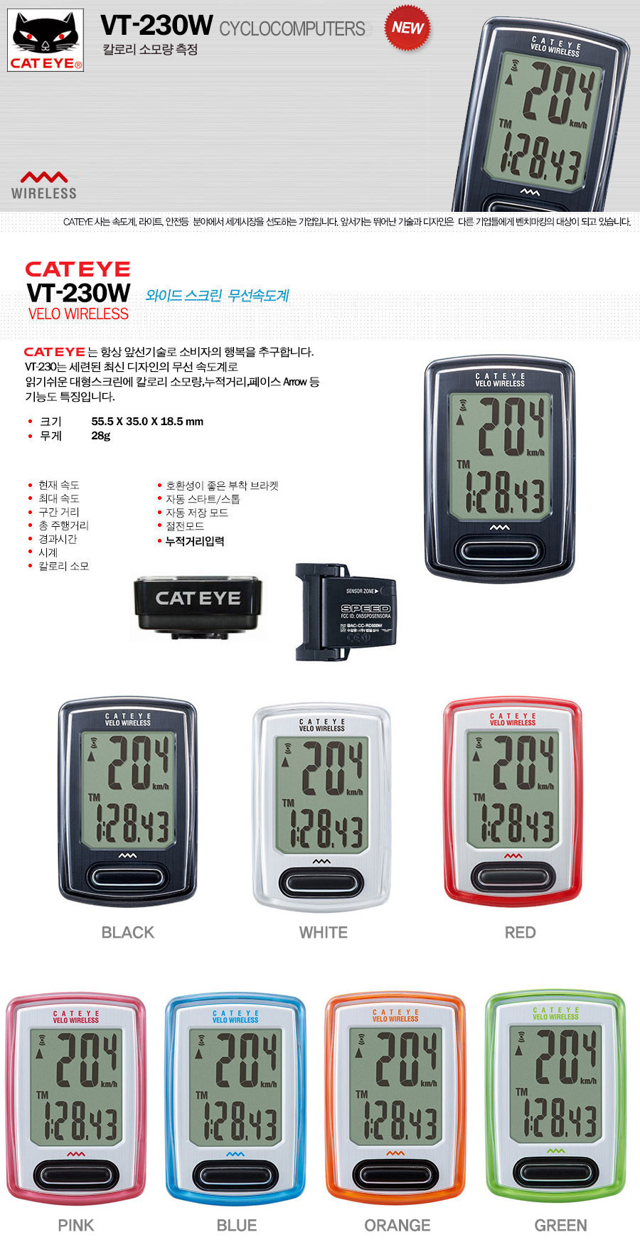CATEYE ¼Óµµ°è VELO 8 (VL-810) 7°¡Áö±â´É+Ä®·Î¸® ±â´É À¯¼±¼Óµµ°è (Ä®·Î¸®±â´É)
