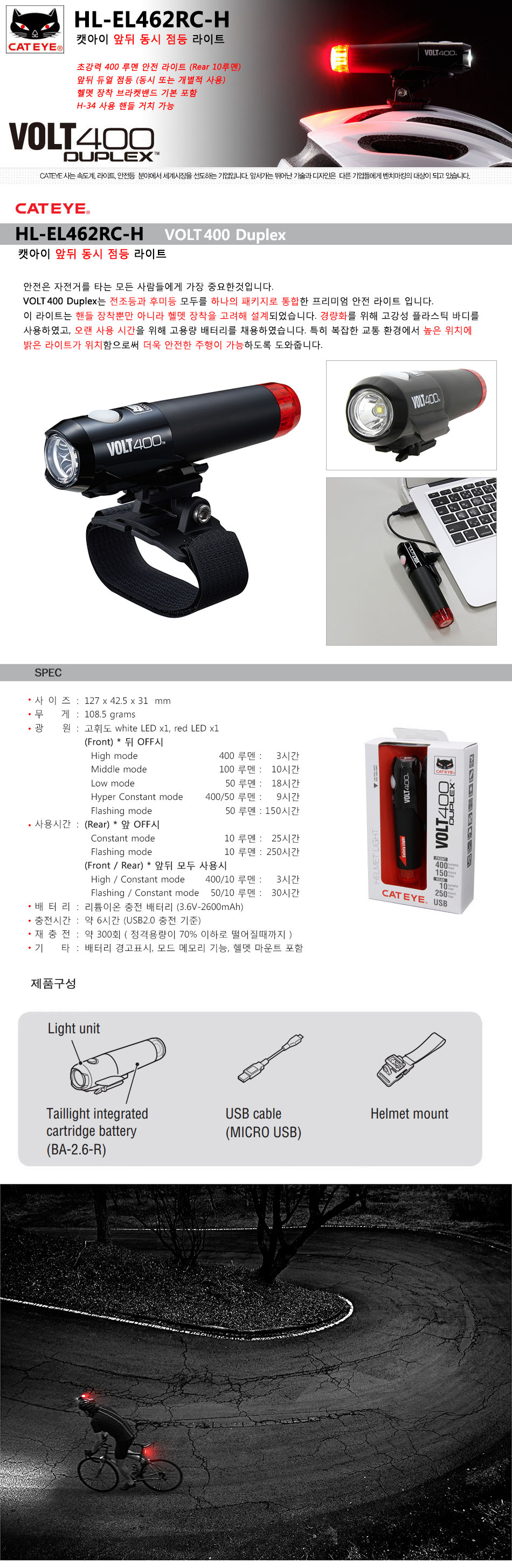 Cateye VOLT 400 µàÇÁ·º½º (Duplex ¾Õ,µÚ µ¿½ÃÁ¡µî Ãʰ­·Â USB ÃæÀü EL-462RC) {¹°Ç°¹øÈ£ 7002} ÇÒÀΰ¡ HL-EL462RC-H (¾ÕµÚ µ¿½ÃÁ¡µî) 88000->69000