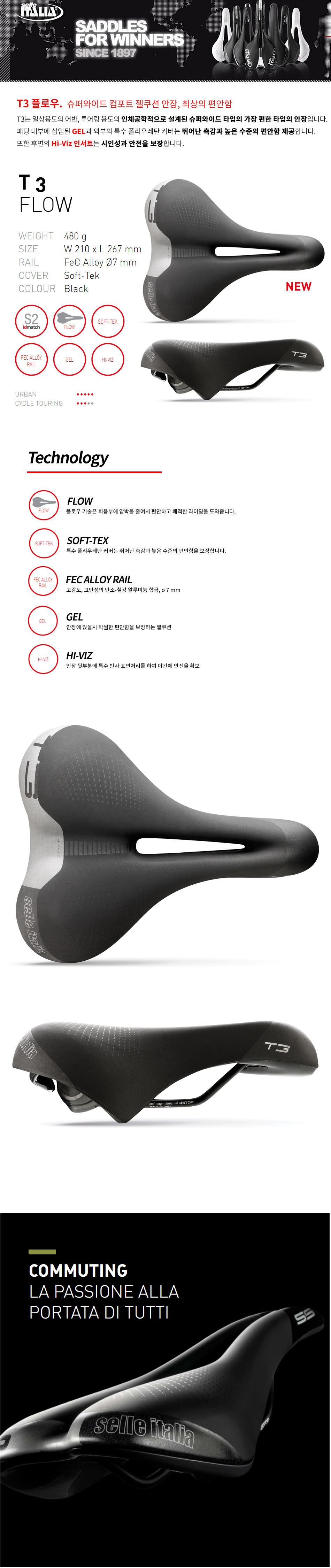 Selle Italia T3 Flow GEL saddle FEC S2 (HI-VIZ) ¾î¹Ý,Åõ¾î¸µ |